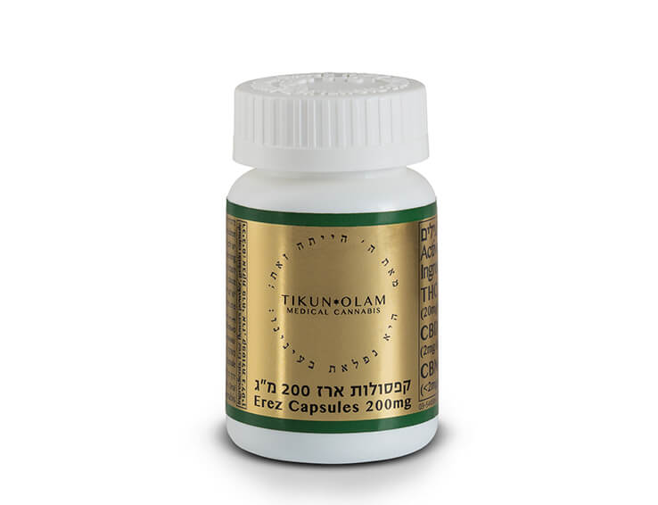 קפסולות ממולאות פרחי קנאביס רפואי מזן ארז של חברת תיקון עולם