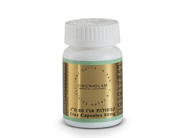 קפסולות ממולאות פרחי קנאביס רפואי מזן ארז של חברת תיקון עולם